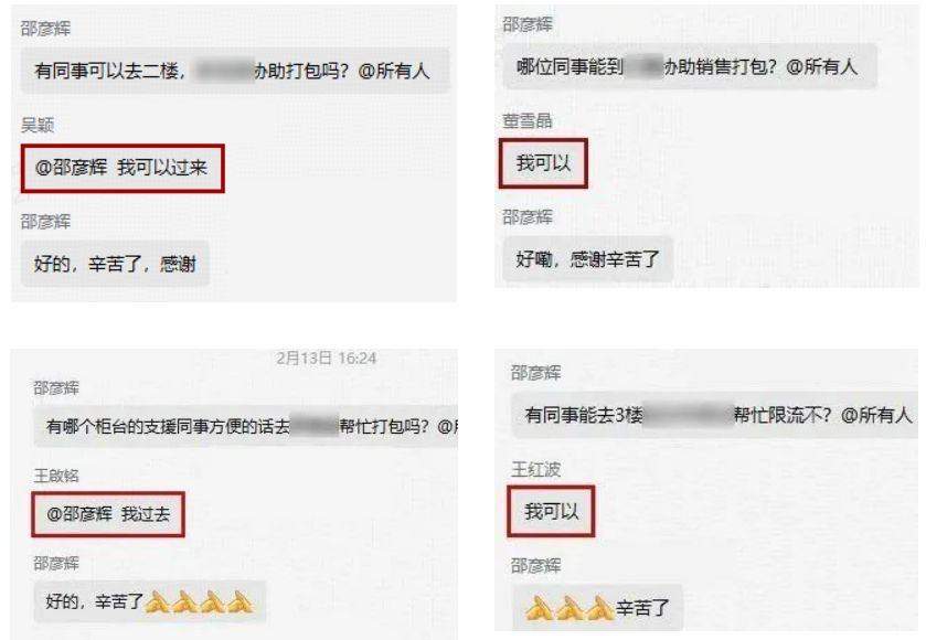 支援過(guò)程中,面對(duì)客流急速攀升、顧客咨詢問(wèn)題增多、秩序維護(hù)繁忙、貨物打包分揀壓力大,需臨時(shí)調(diào)動(dòng)支援崗位等情況,黨群工作部負(fù)責(zé)春節(jié)黨員支援服務(wù)現(xiàn)場(chǎng)協(xié)調(diào)工作的邵彥輝第一時(shí)間溝通協(xié)調(diào),支援隊(duì)員們積極響應(yīng),義無(wú)反顧地沖鋒在前?!拔铱梢浴薄拔疫^(guò)去”“我來(lái)”成了“紅色先鋒隊(duì)”支援交流群里的“刷頻”詞條,這是隊(duì)員們默契配合、共同應(yīng)對(duì)挑戰(zhàn)的具象體現(xiàn)。